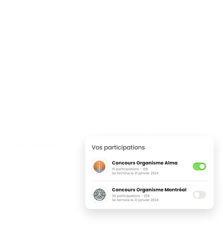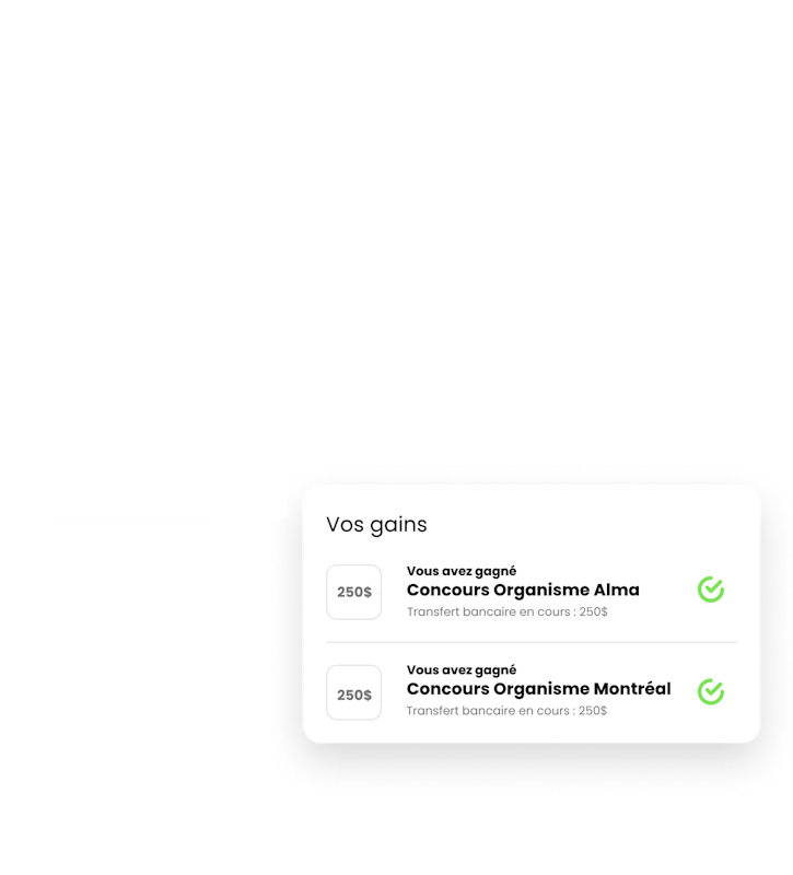 Non, il n'y a aucun frais pour participer aux concours sur Splitéo. Nous fonctionnons sur un modèle de donations volontaires. Cela signifie que les participants ont l'option de laisser une contribution volontaire lors de l'achat de leurs participations, mais ce n'est pas obligatoire. Les organismes reçoivent 100% des montants collectés grâce aux concours, et l'entretien de la plateforme est soutenu par ces contributions volontaires des participants.
